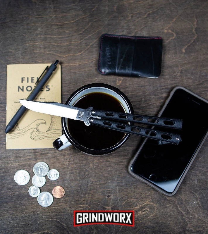 Bear and Son Cutlery specialize in quality U.S. made butterfly knives. The 114 features a black epoxy coating over the zinc handles. It has a skeletonized design to reduce weight with a stainless steel blade and single tang pin construction. Take your flipping skills to the next level with 114 Butterfly 2 Pack from Bear and Son.