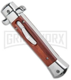 Mago 9″ Wood Italian Stiletto OTF Automatic Knife – Satin Plain
